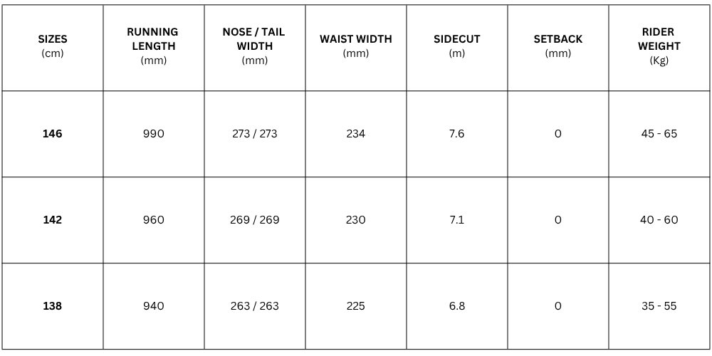 Shape: Twin Camber: Cam-Out Profile: Standard Core Profile Width: Standard Sidecut: Radial Flex: 3/10